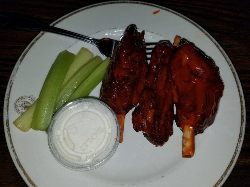 Billy Murphy’s Irish Saloon. Despite this being $4 burger Tuesday, I went for the pig wings in hot Buffalo sauce. I’ll have to remember the Sunday specials on those. Pork shanks, slow roasted until tender, then flash fried and sauced before serving. Hand cut fries are fresh too! This is a serious dive bar in a neighborhood with no other reason to be there. It was not busy, but had a friendly bartender and patrons. The pig wings are reason enough to make a trip to East Falls. They are perfect for the Atkins diet (or the modified version to which I adhere, which also allows unlimited carbs.)