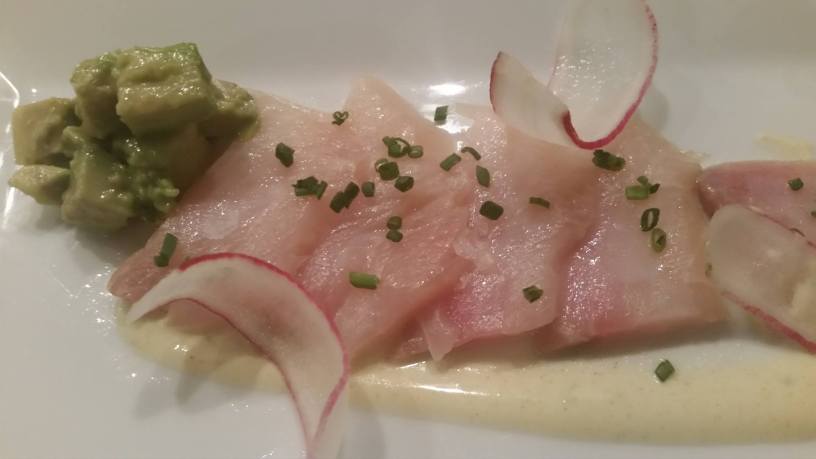 Cerise knocked it out of the park again last night. This place is such a gem. The food is very lovingly prepared, and although the portions seem small, you can still feel satiated by the end of the meal. I didn’t take pix of the pasta course, but the Rigatoni Bolognese was perfectly done and served piping hot. My wife’s spaghetti with dried cherries and sardine was a lesson in balancing sweet and savory. All the preparation was outstanding, but the subtle balance of seasonings sets this place apart. I had to ask what was in the “36-hour Porchetta” – actually a slice of pork belly that had been cooked sous-vide for a few days before being flash-deep-fried to render the fat and add a touch of crispness. I was amazed that it was star anise. Usually this makes food taste like Good-and-Plenty candy.