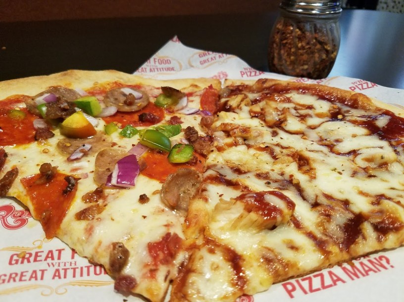 Tony Roni’s is great for the latter. You never know what the pizza-by-the slice selection will be, but it kind of doesn’t matter because you can pretty much select a couple of slices at random and inside the BBQ/Red/White spectrum, they’ll be pretty similar to those on any other visit. Tony Roni is more or less a NY style pie .. relatively thin crust, a reasonable amount of sauce, and commercial Mozzarella.. not too stringy, but not as greasy as some. It’s pretty much the pie you will get at any mall from Maine to Honolulu. Nothing WRONG with that .. the peppers will be fresh, the slice no more than a few hours out of the oven, and for under $10 (with tip) you’re downing two slabs and a fountain soda.