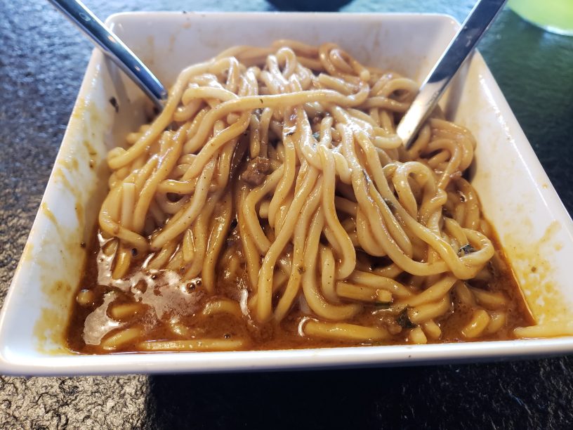 On my subsequent visit, the dry pepper pork was just warm enough that I didn’t return it. Again, extraordinary in taste, but they were unprepared for the crowd they had at lunchtime. I’d spoken to the manager (whom I found out is a co-owner) and he was sincerely apologetic and determined to make things right. Today, he waited on my table personally, and ensured that every aspect of my experience made up for the small mistakes last week. The DanDan noodles were life-changing. He made sure they were prepared “Chinese style) with extra sauce and the combination of numbing Szechuan peppercorns and got peppers brought tears to my eyes (literally.) I had to take off my jacket.